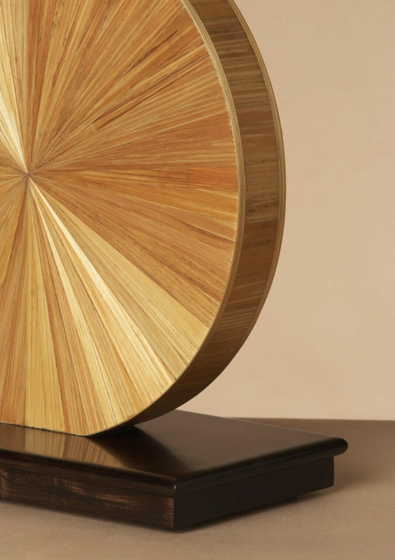 Sur un socle lisse d’ébène massif patiemment poli semble « rouler » un disque de lumière.