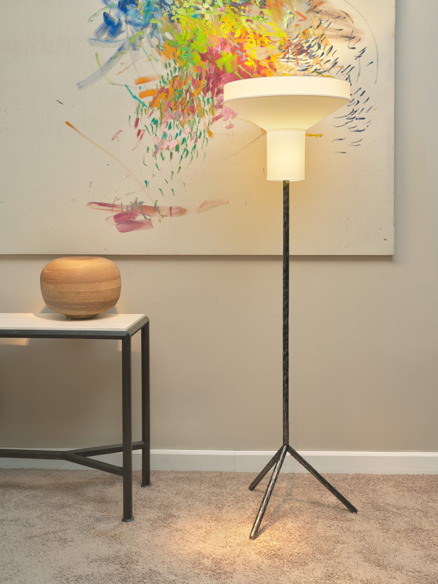 So this simple floor lamp resting on three legs obviously evokes a tree and its roots.
