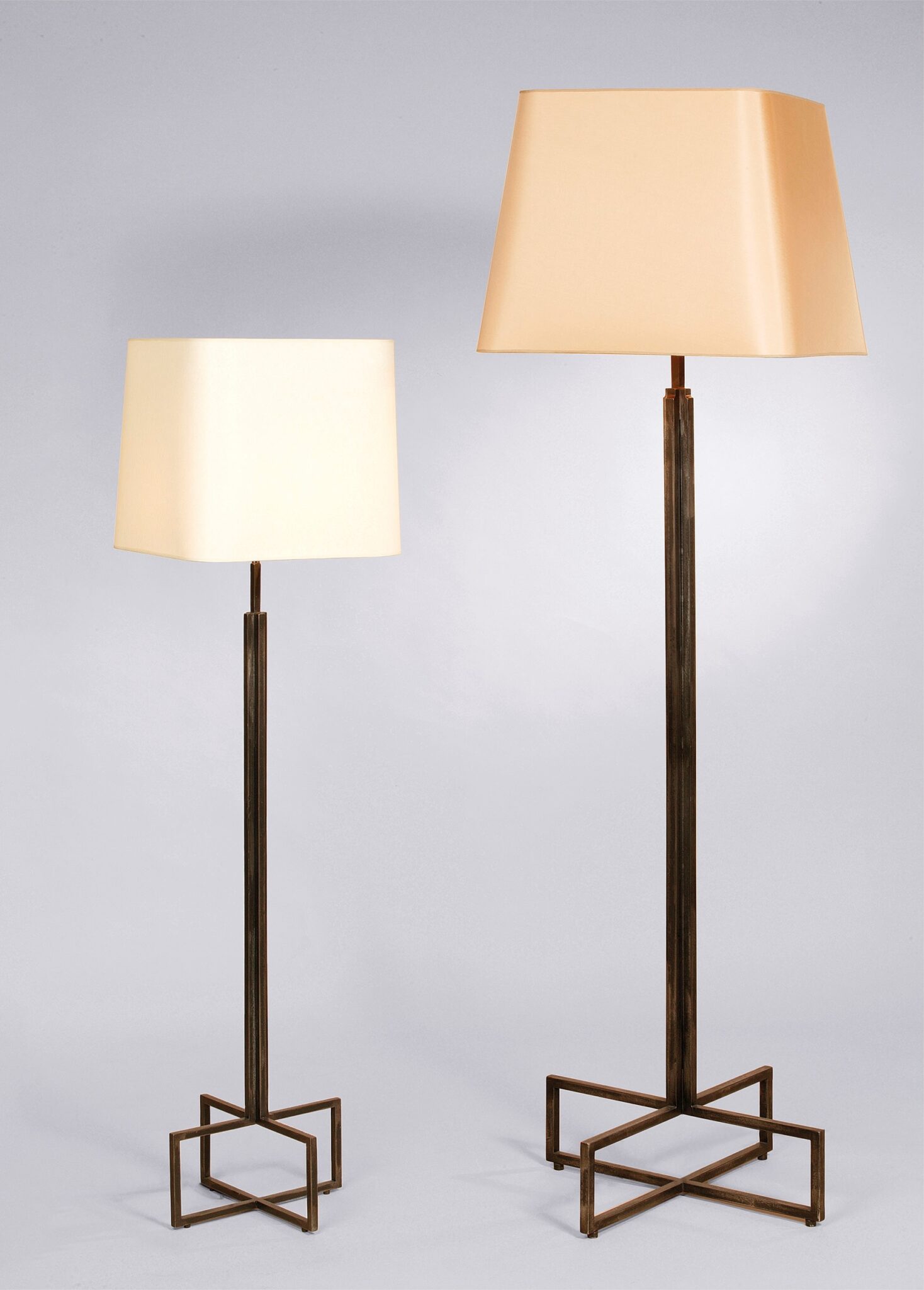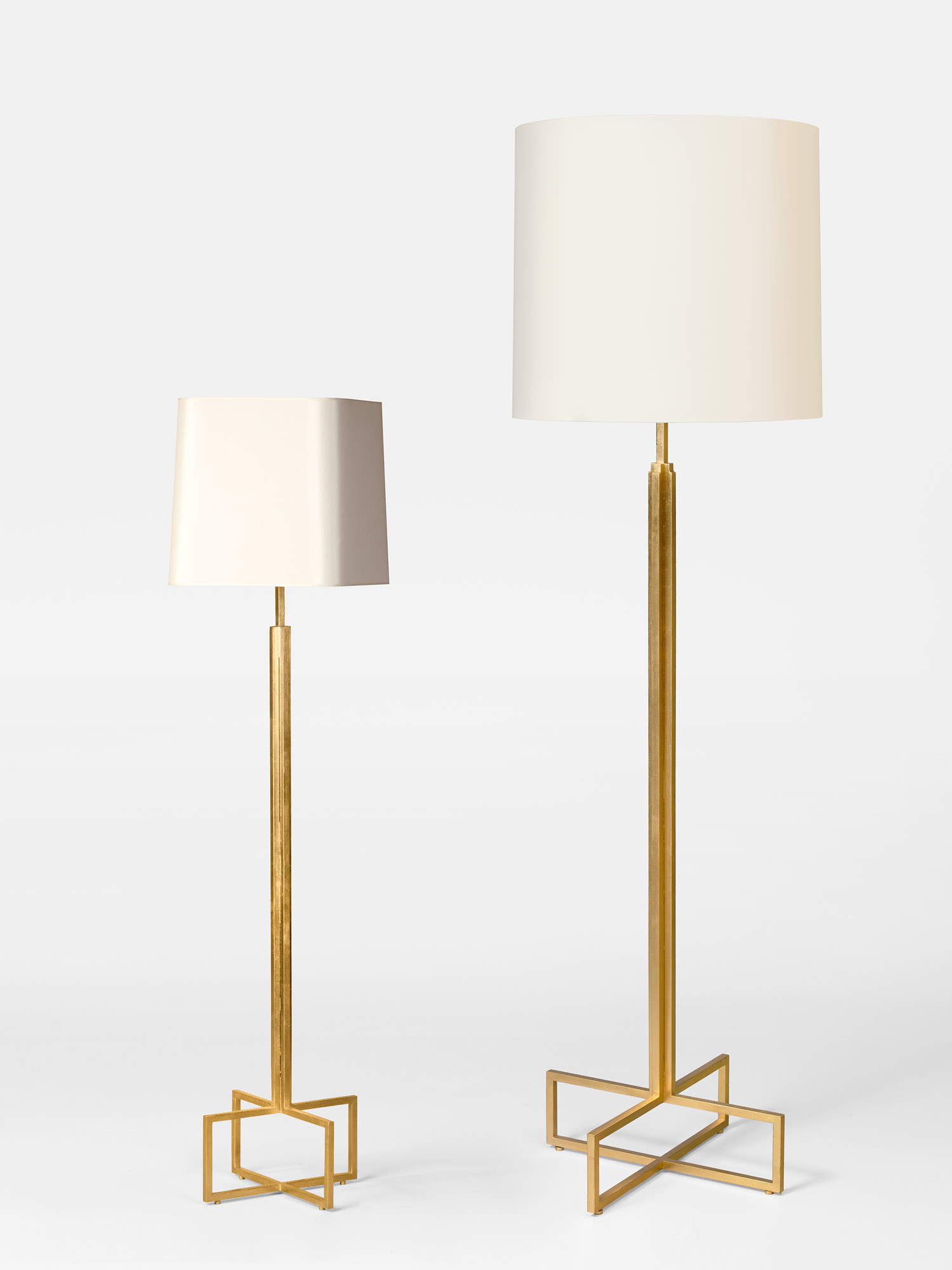 Le lampadaire Phidias met à l’honneur deux savoir-faire traditionnels des Arts décoratifs : la ferronnerie d’art et le décor à la feuille d’or sur acier.
