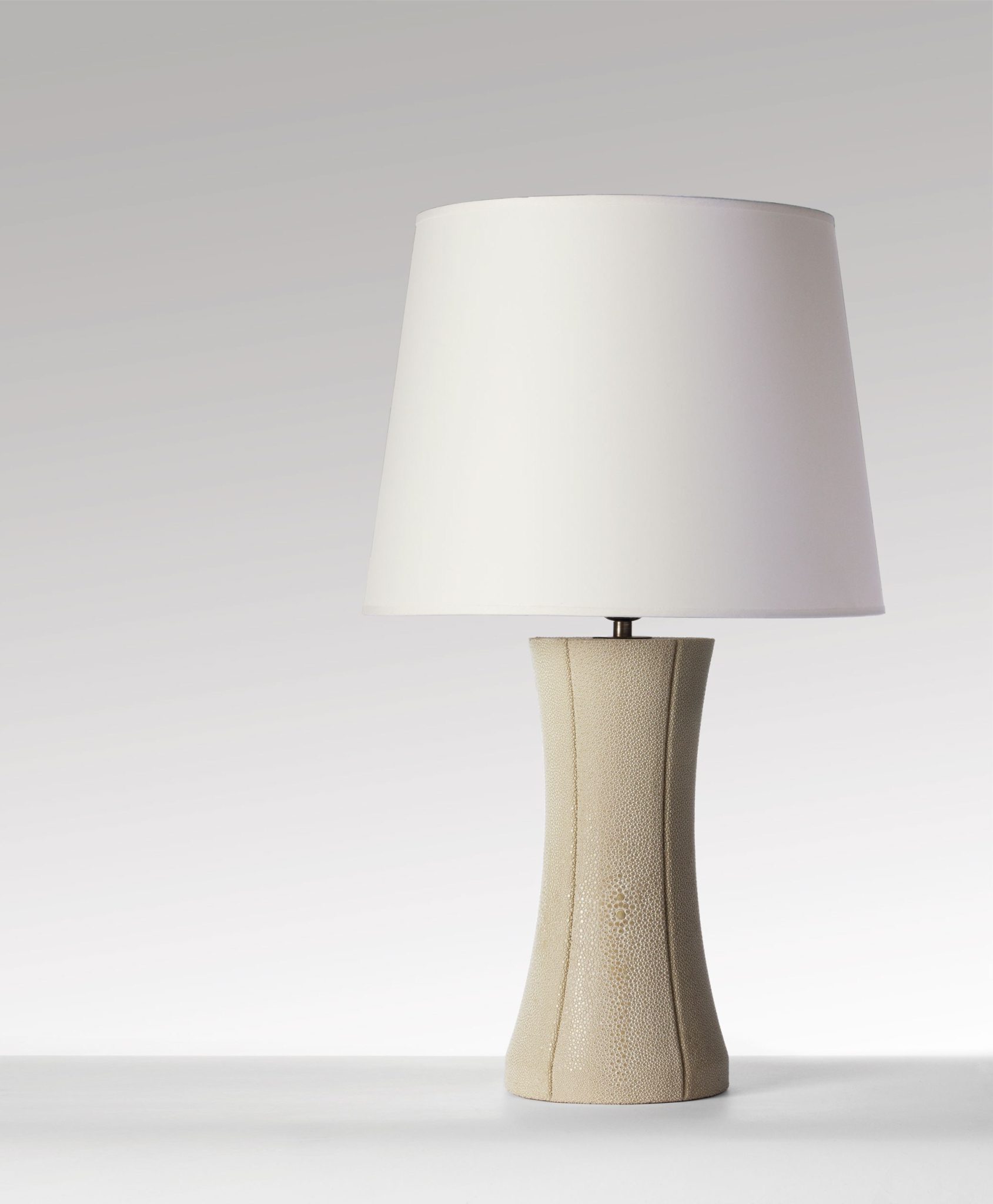 A master leatherworker dresses the Seti lamp with shagreen skins.