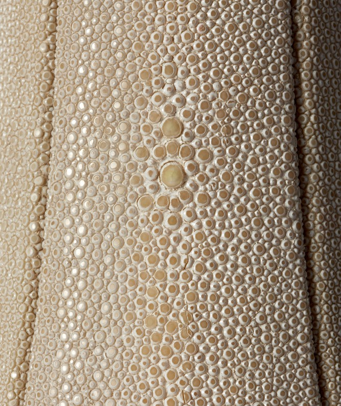 Shagreen is ray leather. Its use dates back to the 8th century in Japan, where it was used to decorate sword hilts or inros.
