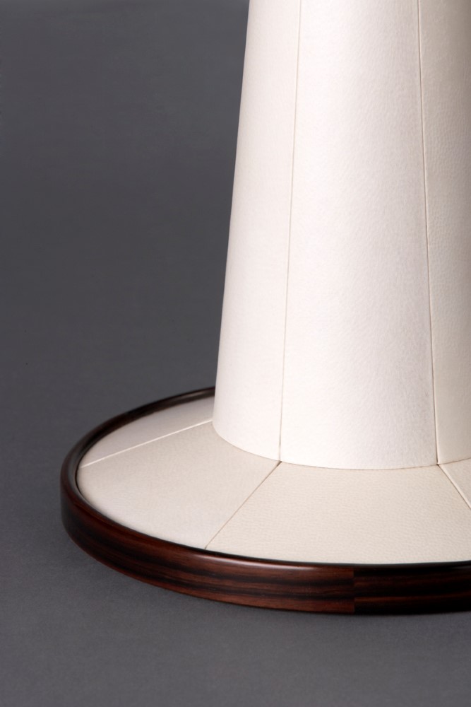 La lampe Tanis met à l’honneur le parchemin, qui nécessite le savoir-faire d’un maître en ébénisterie pour préparer les peaux de parchemin, les sélectionner, les tailler puis les coller sur le meuble. A l’origine, le parchemin était utilisé pour servir de support à l’écriture, avant que ne soit inventé le papier. Succédant au papyrus, principal médium de l’écriture en occident jusqu’au VII siècle, le parchemin a été abondamment utilisé durant tout le Moyen Âge, notamment par les moines qui consacraient une grande partie de leur temps à réaliser des manuscrits enluminés. C’est grâce au parchemin que les grands textes philosophiques, scientifiques et politiques de l’antiquité grecque et romaine ont été conservés et diffusés dans toute l’Europe.