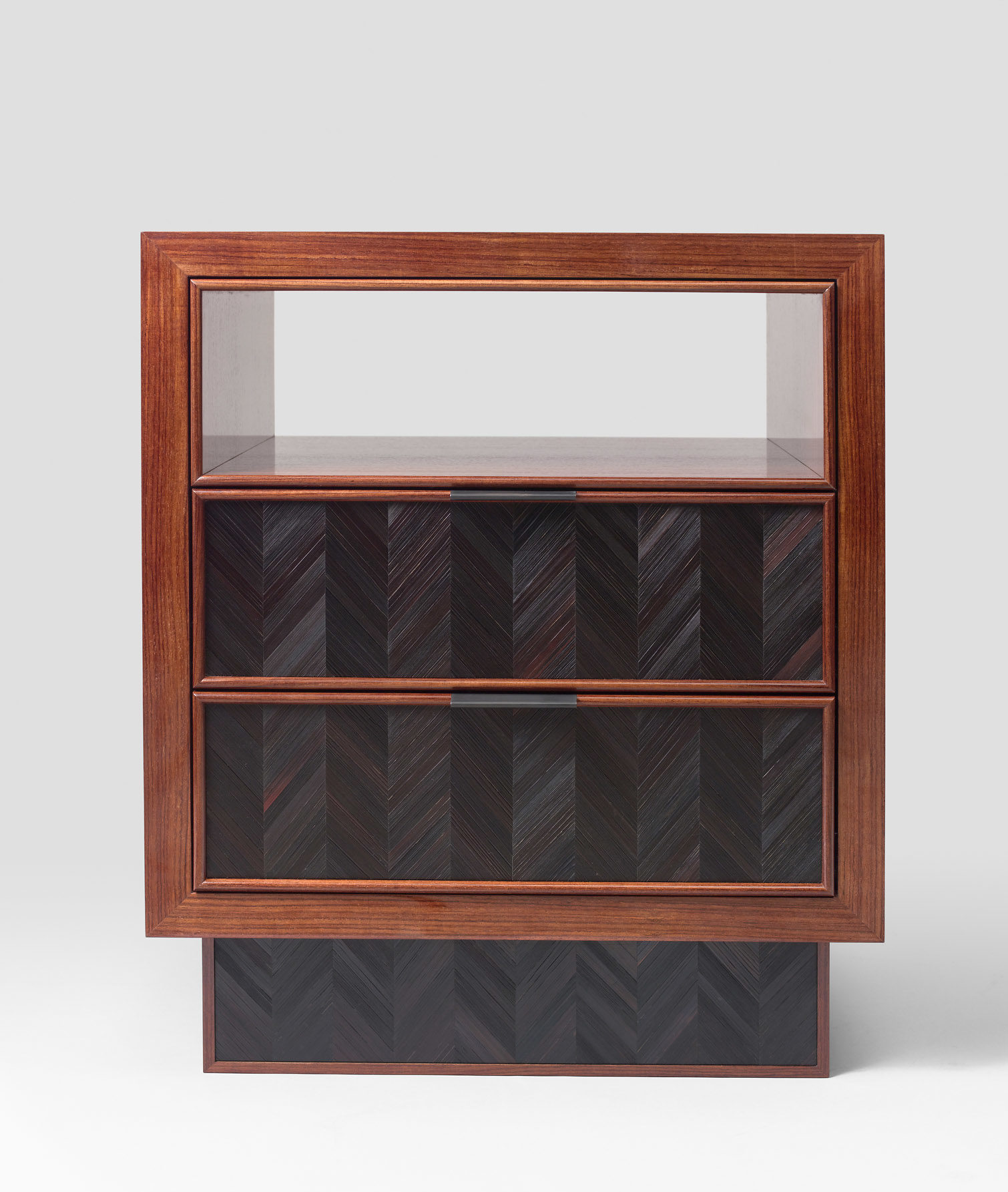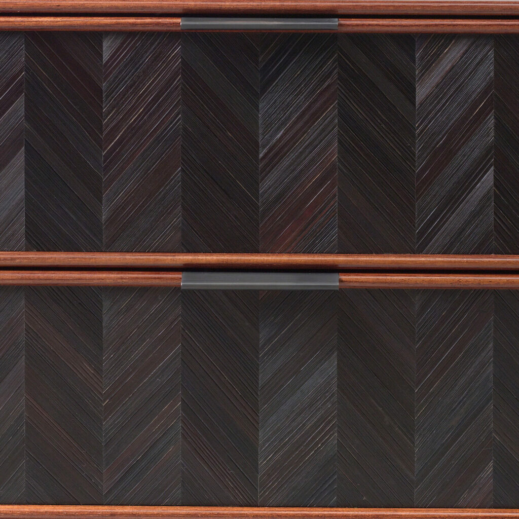 Black straw marquetry with a chevron pattern