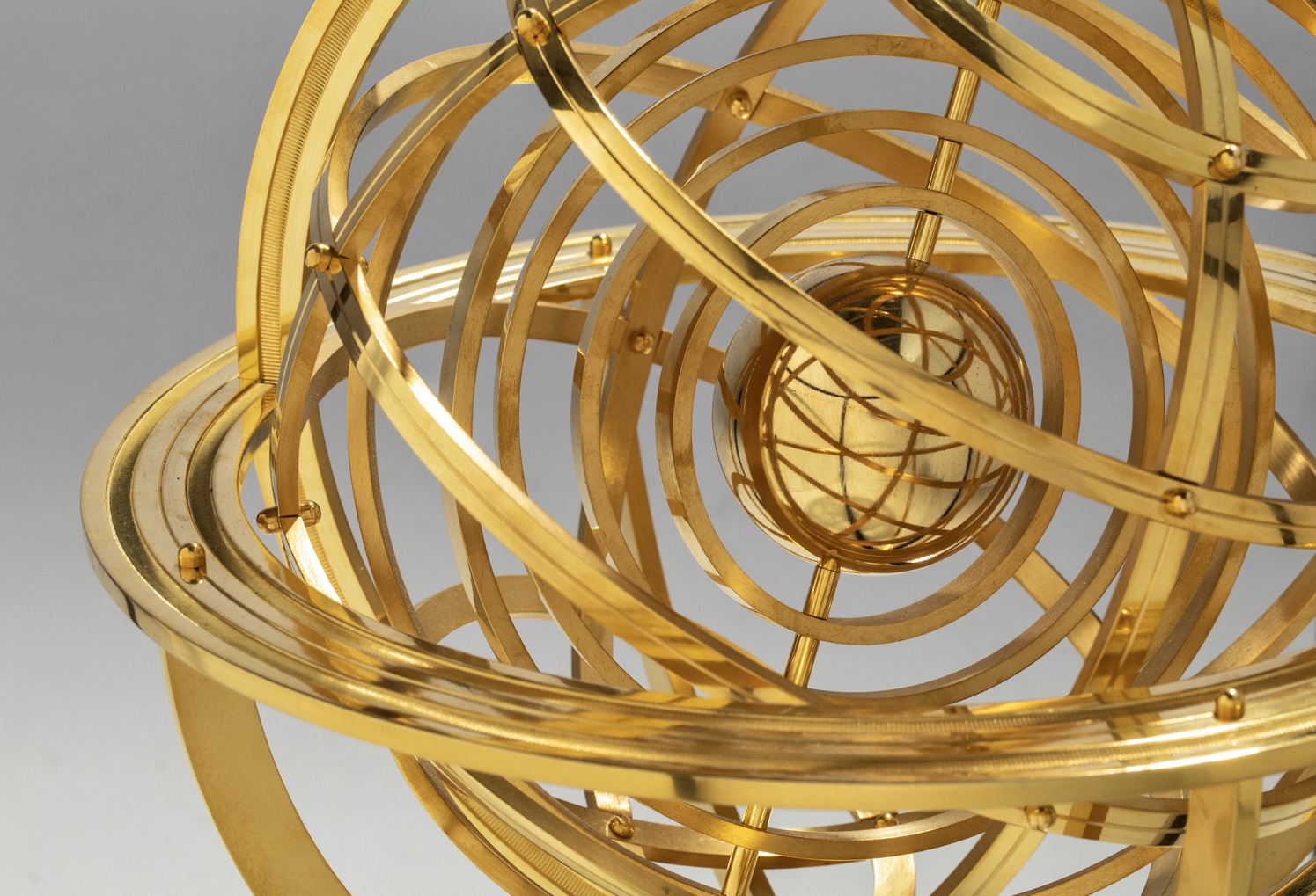 Armillary sphere in solid brass, gilded with 18-carat gold leaf