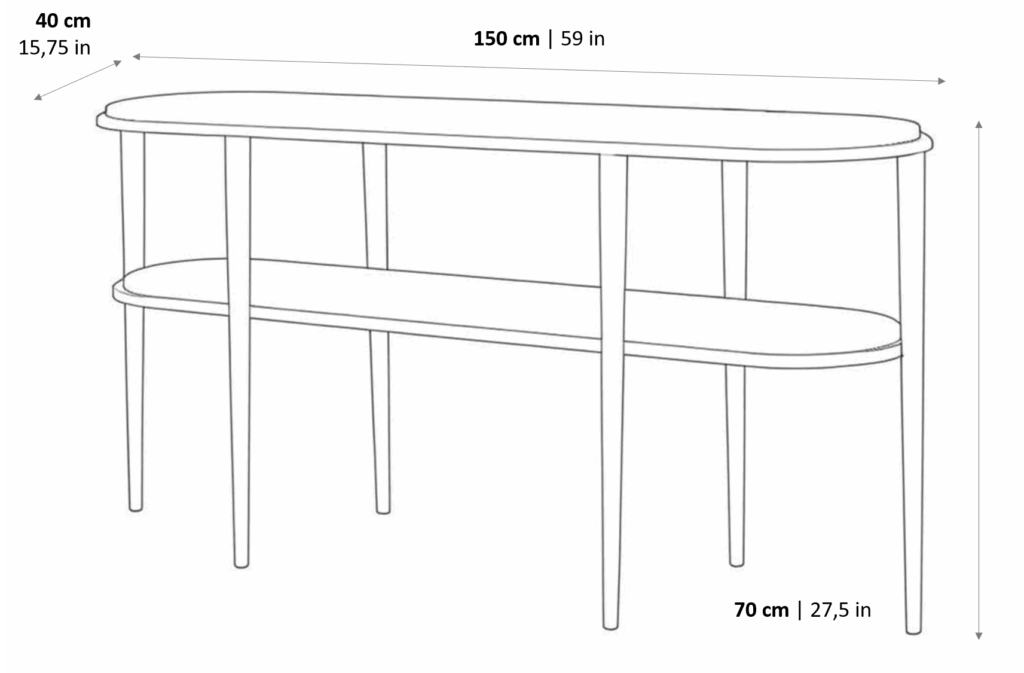 dimensions L = 150 cm | W = 40 cm | H = 70cm