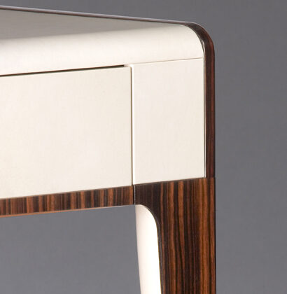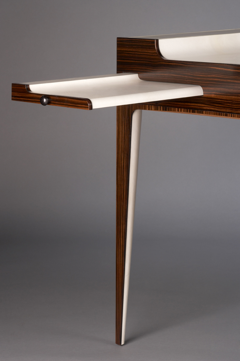 The Louxor desk therefore incorporates the stylistic codes of black and white, as well as the timeless shapes used on the furniture of the period.