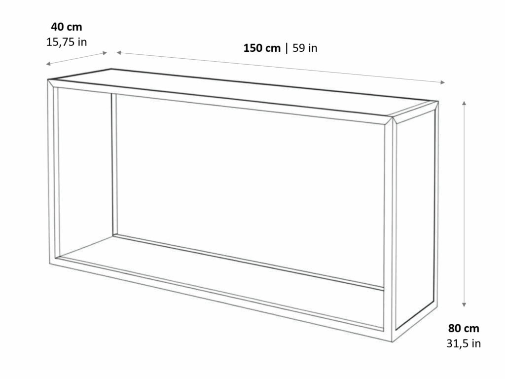 L = 59 in | D = 15.75 in | H = 31.5 in