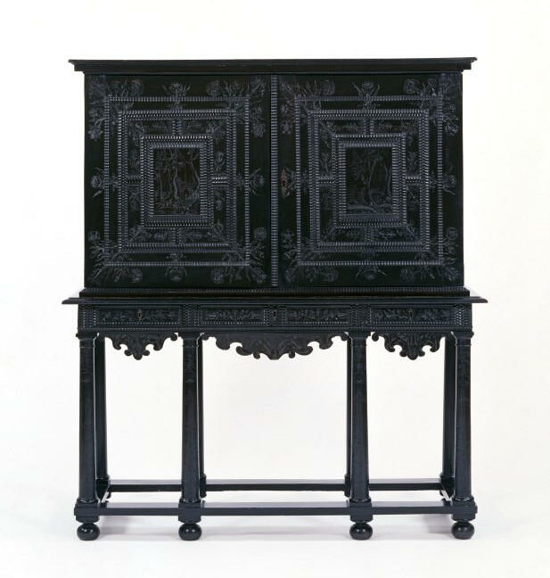 Comme ces cabinets d’autrefois, le cabinet Orion se présente comme un coffre revêtu de bois précieux reposant sur un piétement sculpté.