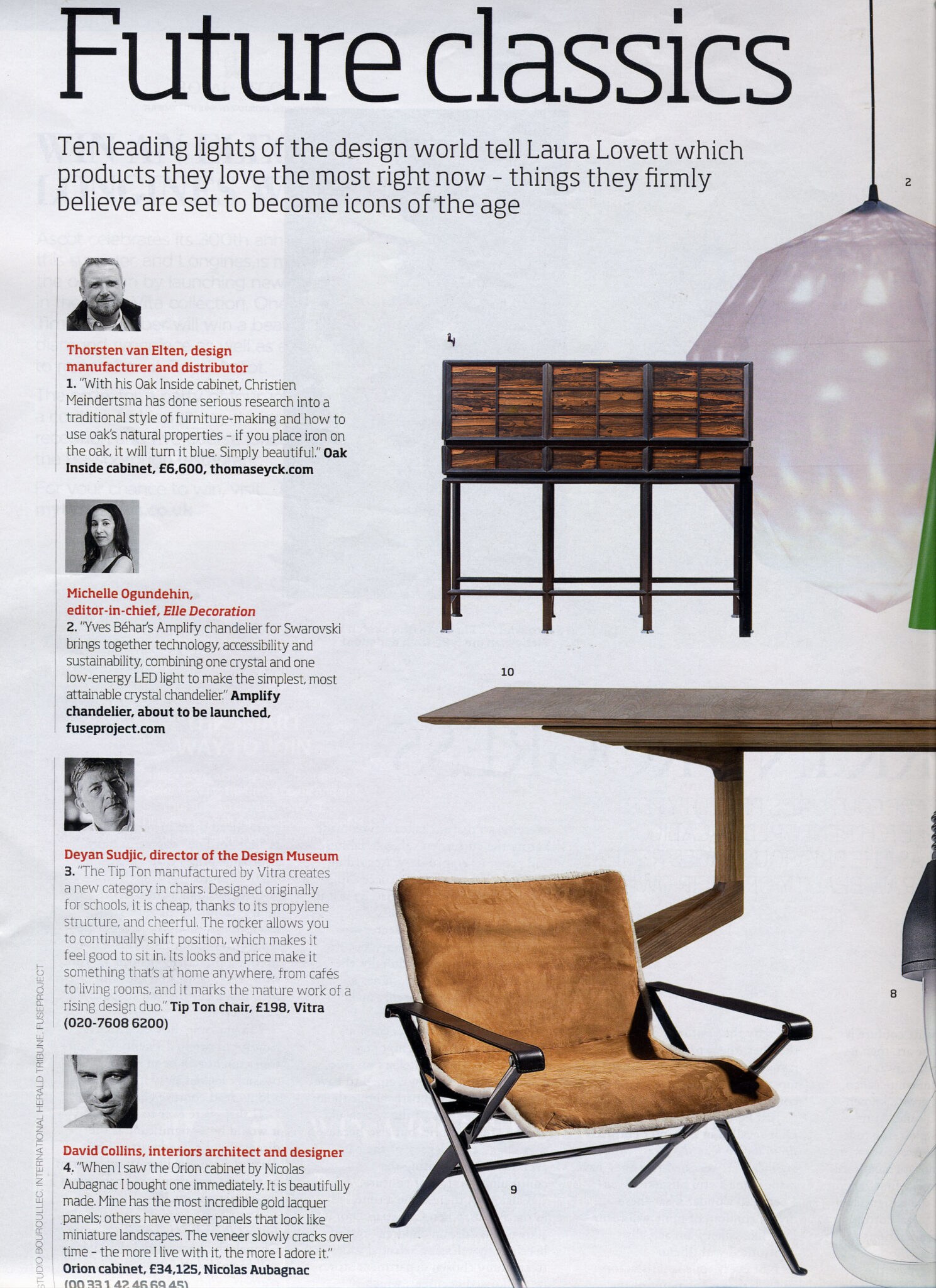 In this article, David Collins, interior architect and designer chose Orion that he purchased for his own residence. After the designer’s death, Orion was sold by Christie’s. The final bid was three times the purchase price.
