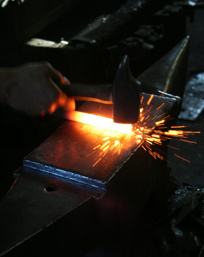This is called a “forge black” patina because it uses an ancient technique that involves fixing the calamine that forms on the surface of the metal under the combined action of high temperatures and hammering on an anvil.