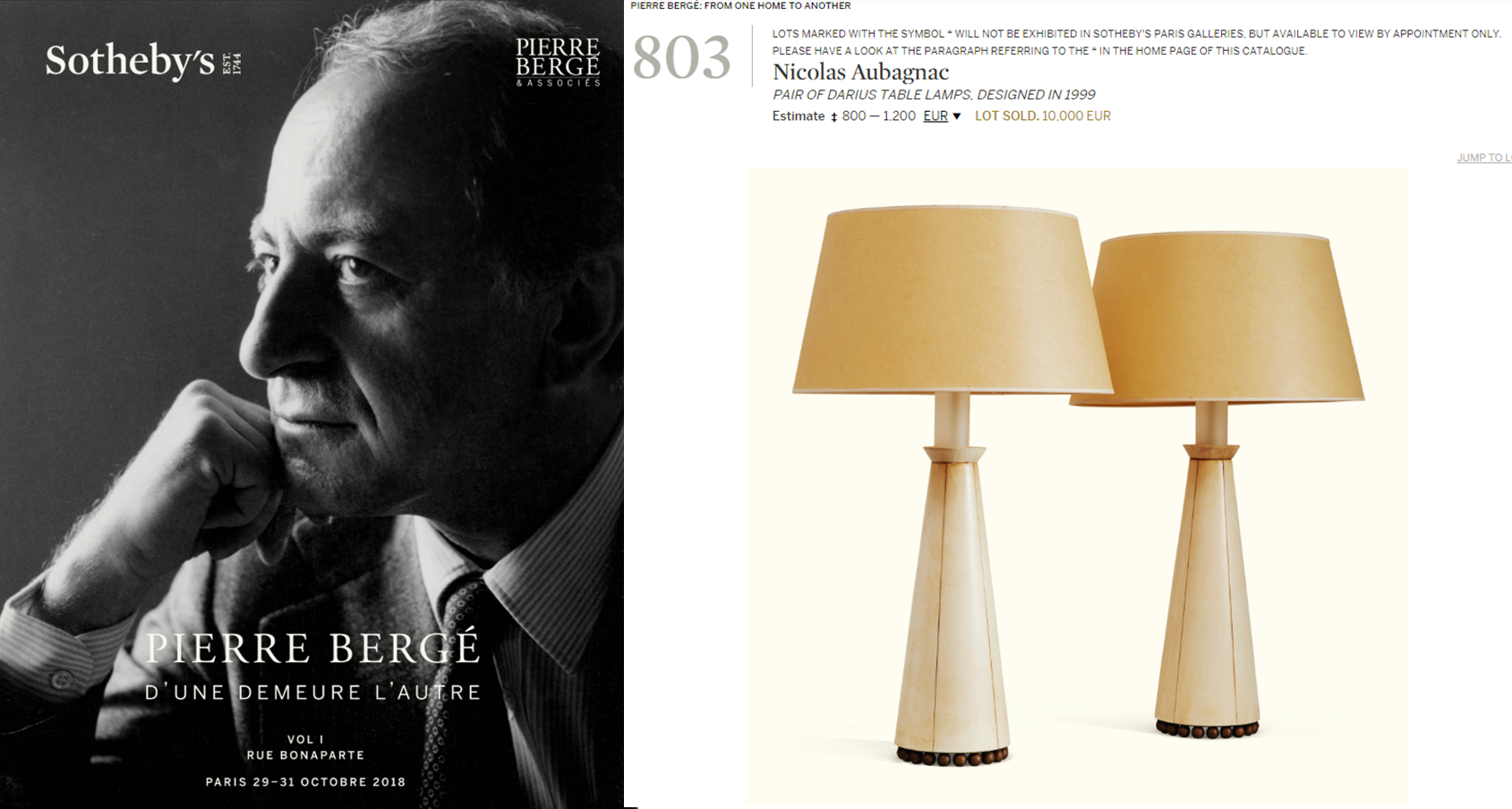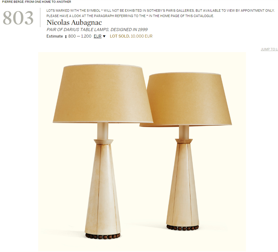 Belle enchère sur une paire de lampes Darius acquise par Pierre Bergé et Yves Saint Laurent pour la Villa Mabrouka de Tanger